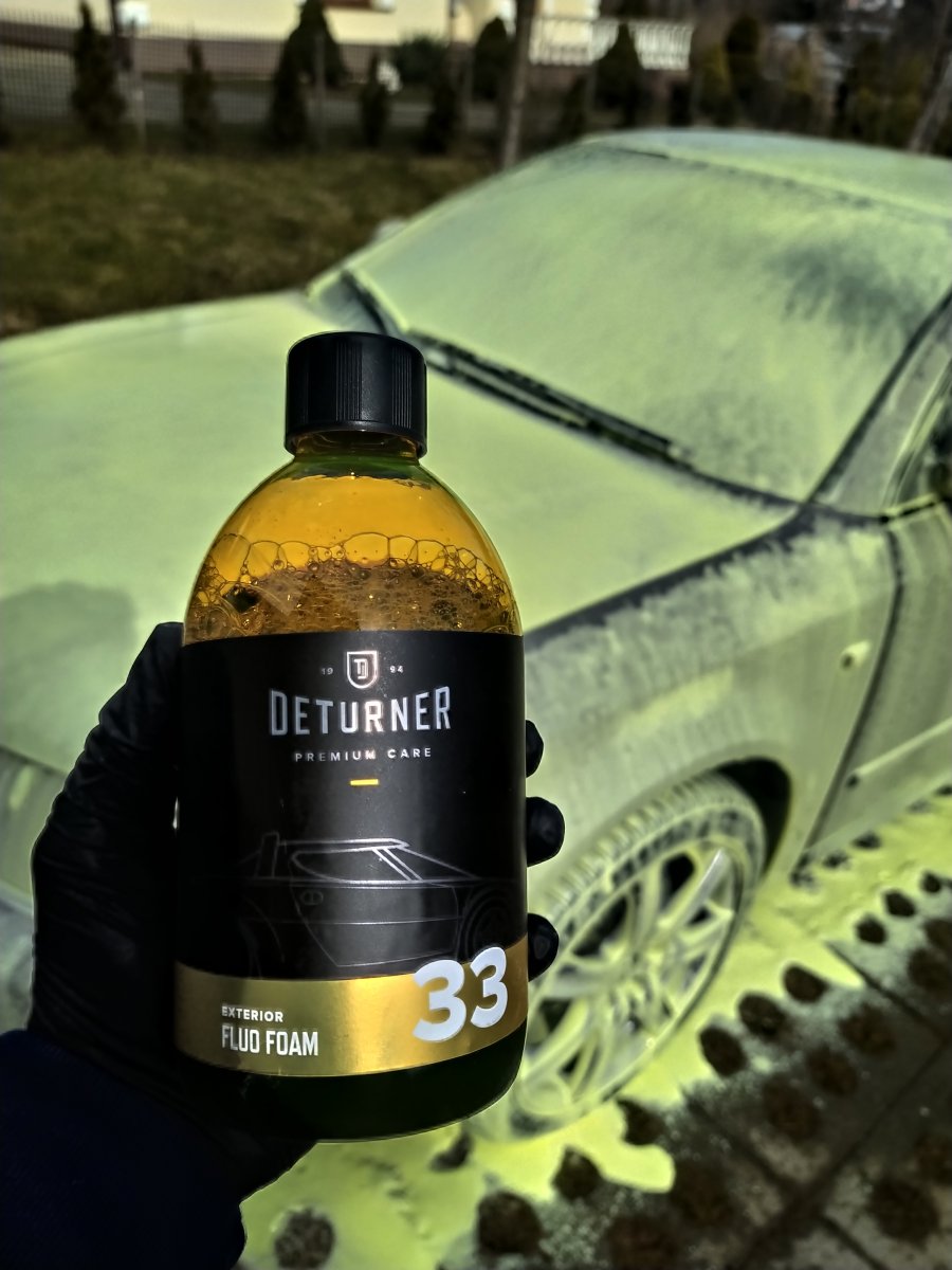 Deturner Fluo-Foam ger ett koncentrerat aktivt skum för förtvätt och mjukgöring av smuts. Dess fördel är neutralt pH och avsaknaden av skadliga ämnen. Det skadar inte applicerade lackskydd och vaxer, särskilt de som är baserade på naturliga ingredienser, vilket möjliggör regelbunden användning. Höga mjukgörande egenskaper minskar risken för repor på tvätten. Tjockt, behagligt doftande skum som varar i cirka 5-7 minuter.