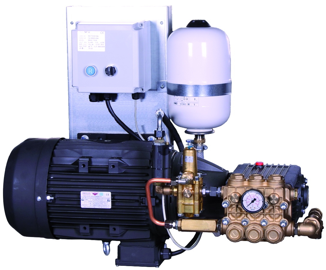 Stationär högtryckstvätt med start & stopp och pulsationsdämpare.